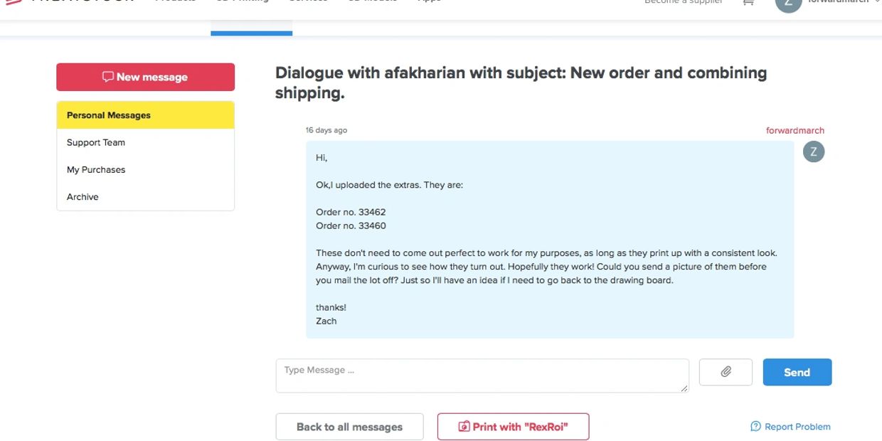 After you select your printing service, you'll be prompted ot put in your address and payment information. Once you do that, you just wait to receive your models.